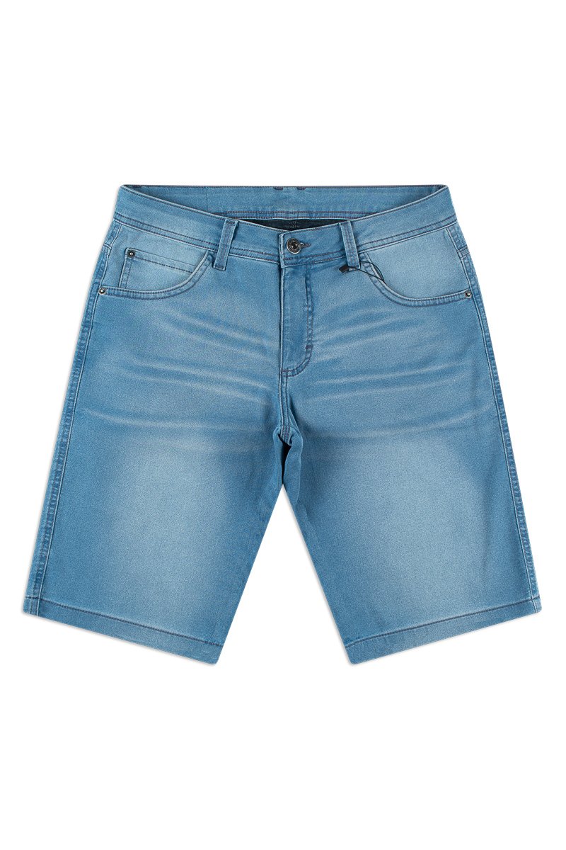 Bermuda com lavação tradicional jeans claro com leve efeito used. Bolsos funcionais frente e costas.