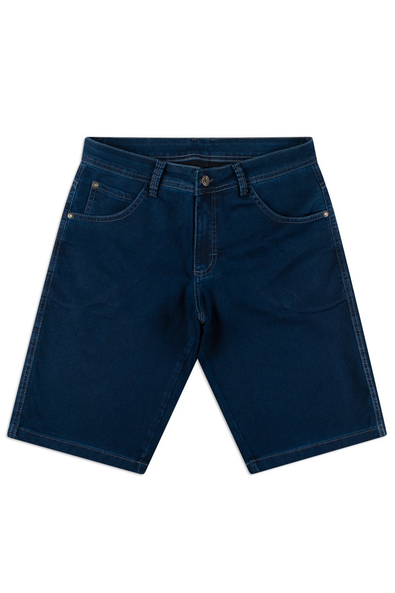 Bermuda com lavação em jeans escuro tradicional. Bolsos funcionais frente e costas.