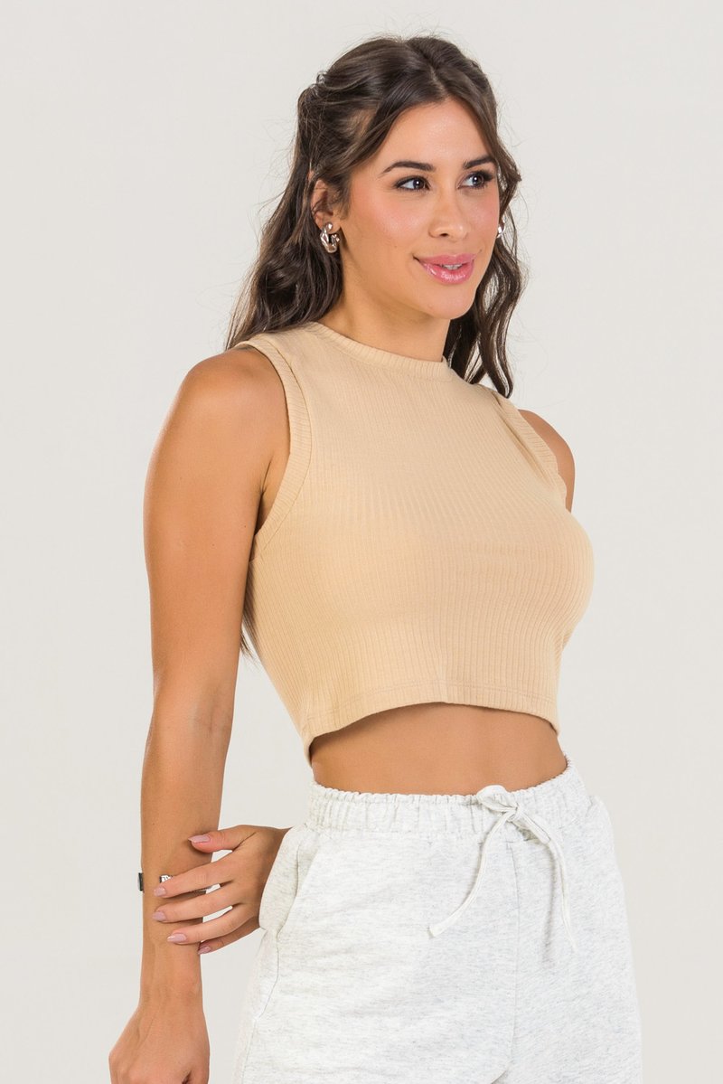 Blusa Cropped Regata Canelada Poliviscose/Elastano