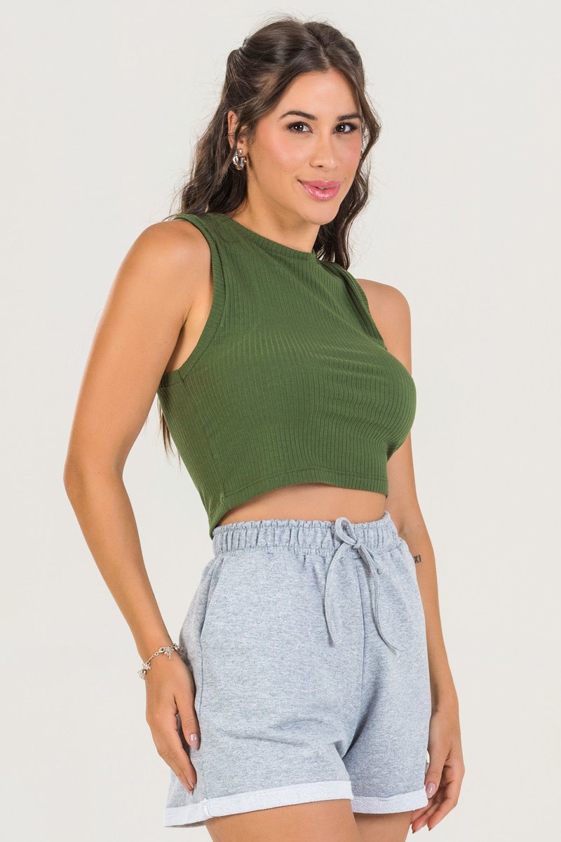 Blusa Cropped Regata Canelada Poliviscose/Elastano