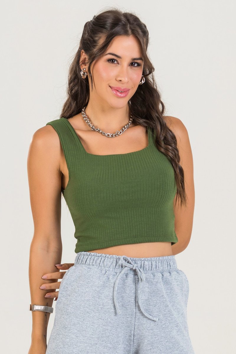 Blusa Cropped Faixa Ribana Canelada Poliviscose/Elastano