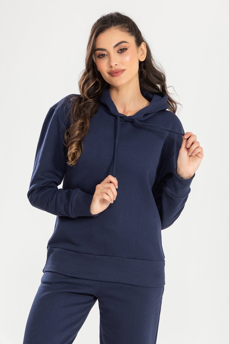 Moletom em algodão, com o avesso peluciado, punhos elásticos e capuz ajustável.