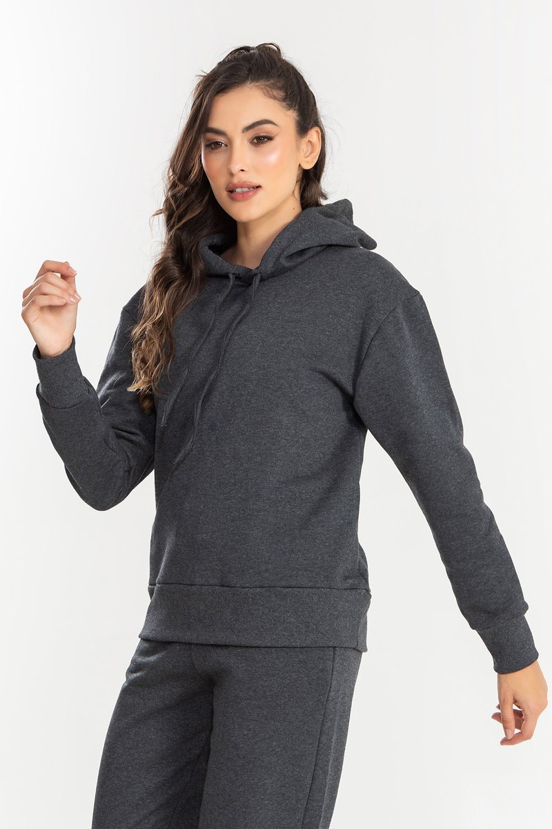 Moletom em algodão, com o avesso peluciado, punhos elásticos e capuz ajustável.