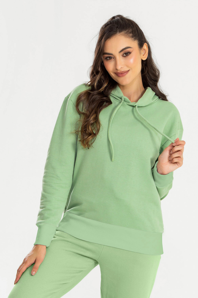 Moletom em algodão, com o avesso peluciado, punhos elásticos e capuz ajustável.