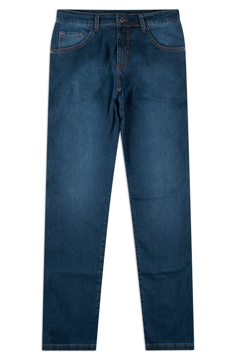 Modelagem skinny com caimento levemente mais justo nas pernas, extra conforto. Lavagem tradicional jeans azul médio com leve efeito used nas pernas. Bolsos funcionais frente e costas.