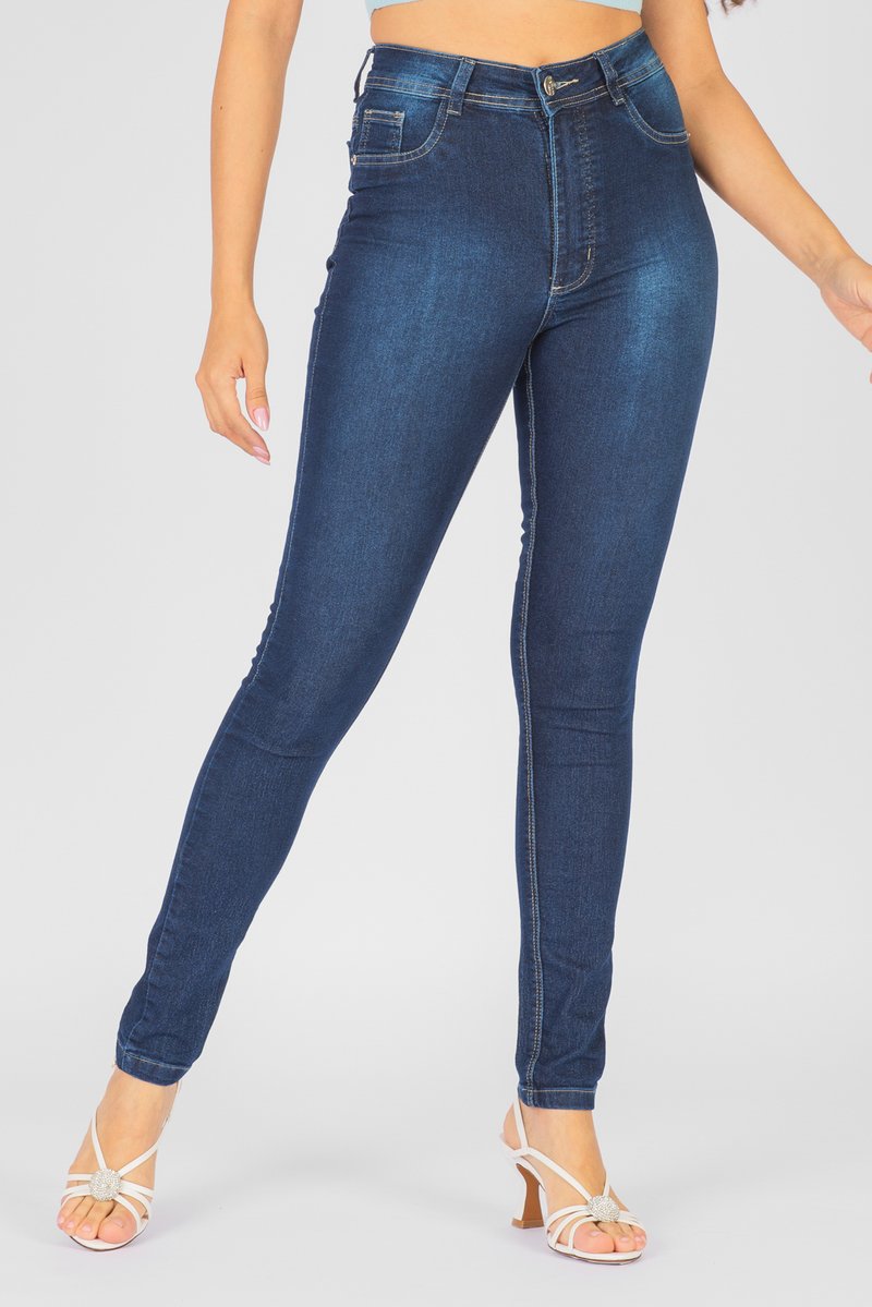 Calça Jeans Skinny Hot Pants Feminina Class Escura possui lavação tradicional escura com leve efeito used. Modelagem justinha ao corpo da cintura até a barra.