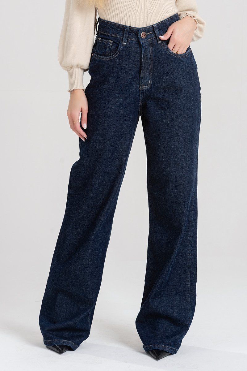 Trouxemos a Wide Betta, versátil que transita do dia à dia até ocasiões mais sociais. Feita em jeans 100% algodão, é estruturada na medida certa, macia e disponível em tonalidade escura para combinar com diferentes partes de cima. Extremamente confortável por ser mais larguinha, além de ser um ícone fashionista.