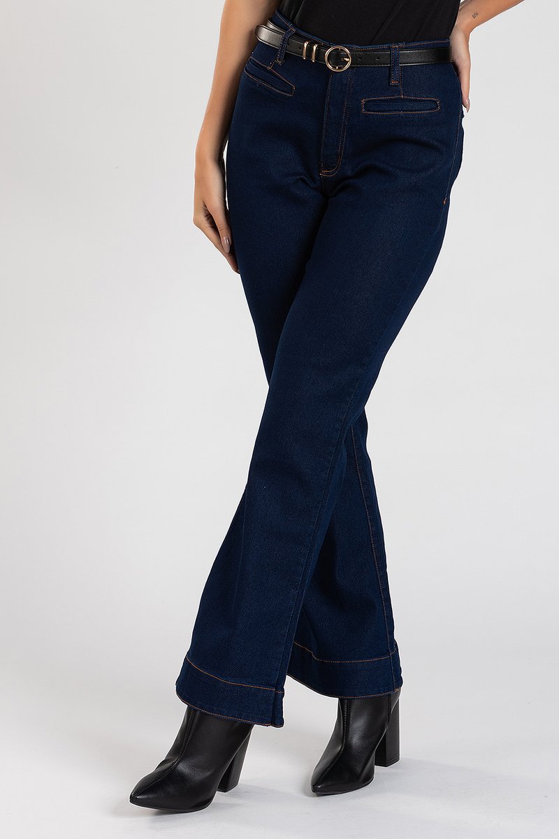 Moderna e confortável, a leve flare é ideal para somar no guarda-roupas feminino. Conta com uma construção levemente flexível que confortavelmente se molda ao corpo sem deixar a estrutura da peça de lado. Seu recorte leve flare se assemelha a modelagem bootcoot. Com toda certeza essa é mais uma escolha ideal! A peça tem lavação em jeans escuro, conta com bolsos retrô frontais e são funcionais. A barra tem a bainha alongada.
