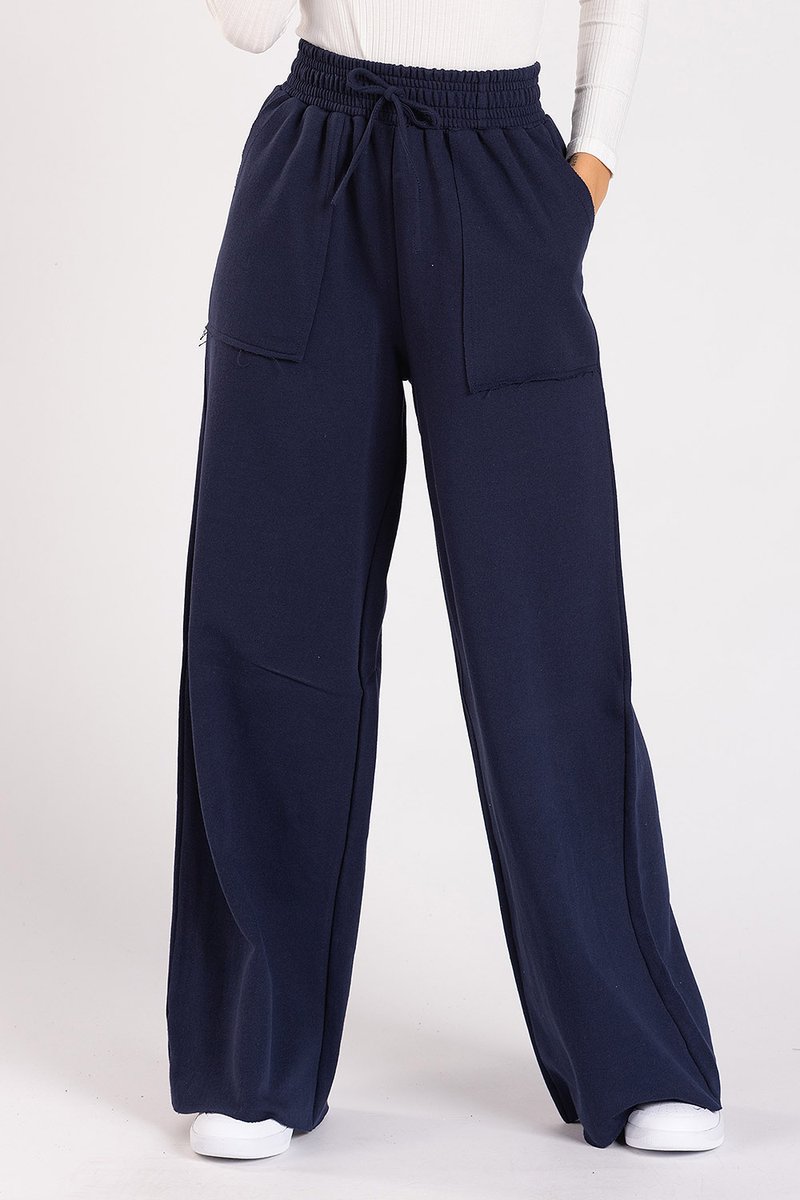 Calça Wide Leg com bolsos sobrepostos, confeccionada em moletinho confortável e encorpado. Possui cós com elástico e cordão ilustrativo. Modelagem soltinha, com barra a fio e caimento moderno. A malha é resistente e ideal para os dias mais frescos. O moletinho tem a estrutura clássica de moletom, mas com lado externo liso e avesso em felpa não peluciada, proporcionando frescor e maciez no contato com a pele.