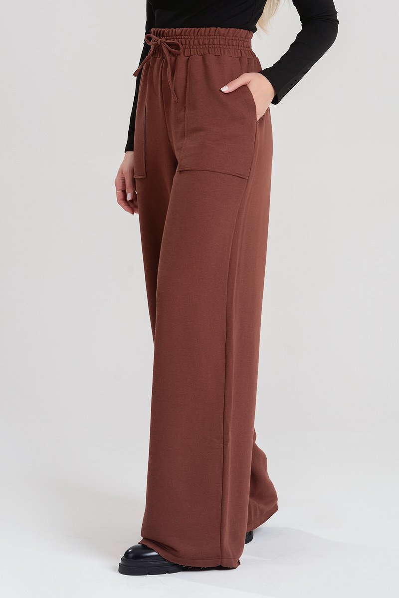 Calça Wide Leg com bolsos sobrepostos, confeccionada em moletinho comfy, leve e confortável. Possui cós com elástico e cordão ilustrativo. Modelagem soltinha. Barra com corte a fio sem bainha.