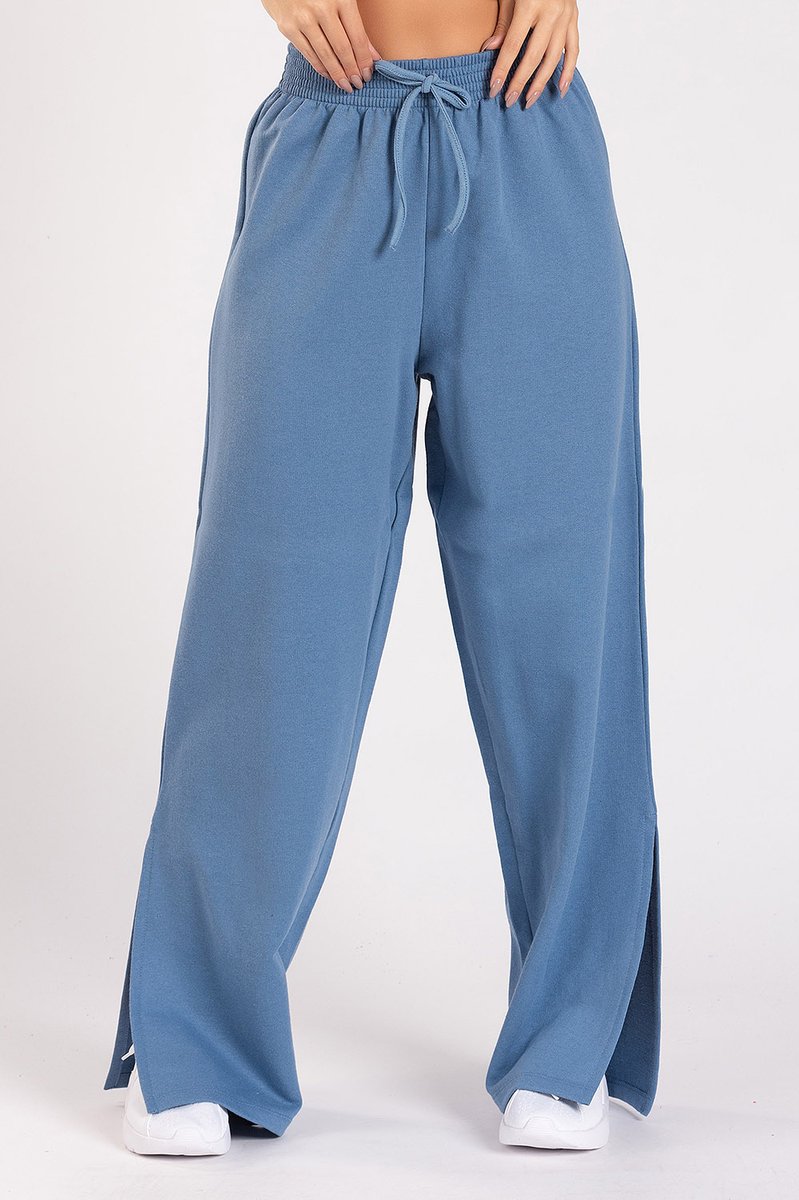 Calça Wide Leg lua com fenda na barra, confeccionada em moletinho comfy, leve e confortável. Possui cós com elástico e cordão ilustrativo. Modelagem soltinha. A malha é resistente.