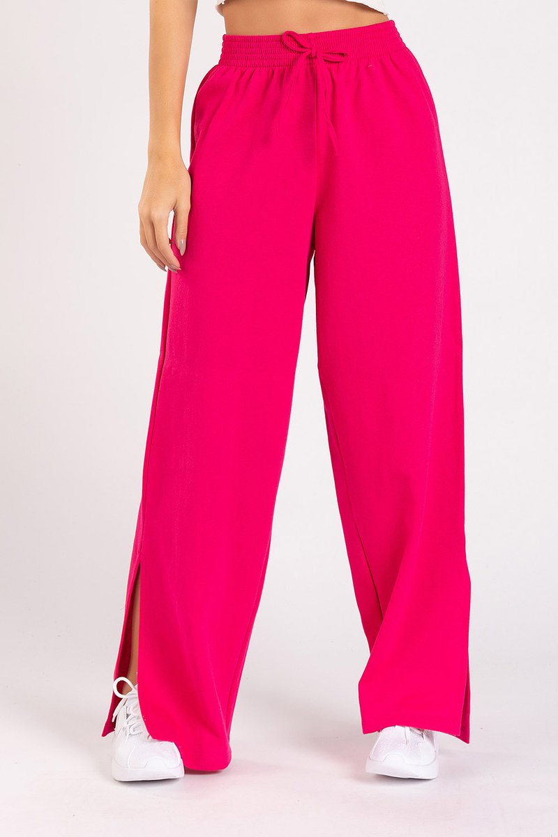 Calça Wide Leg lua com fenda na barra, confeccionada em moletinho comfy, leve e confortável. Possui cós com elástico e cordão ilustrativo. Modelagem soltinha. A malha é resistente.