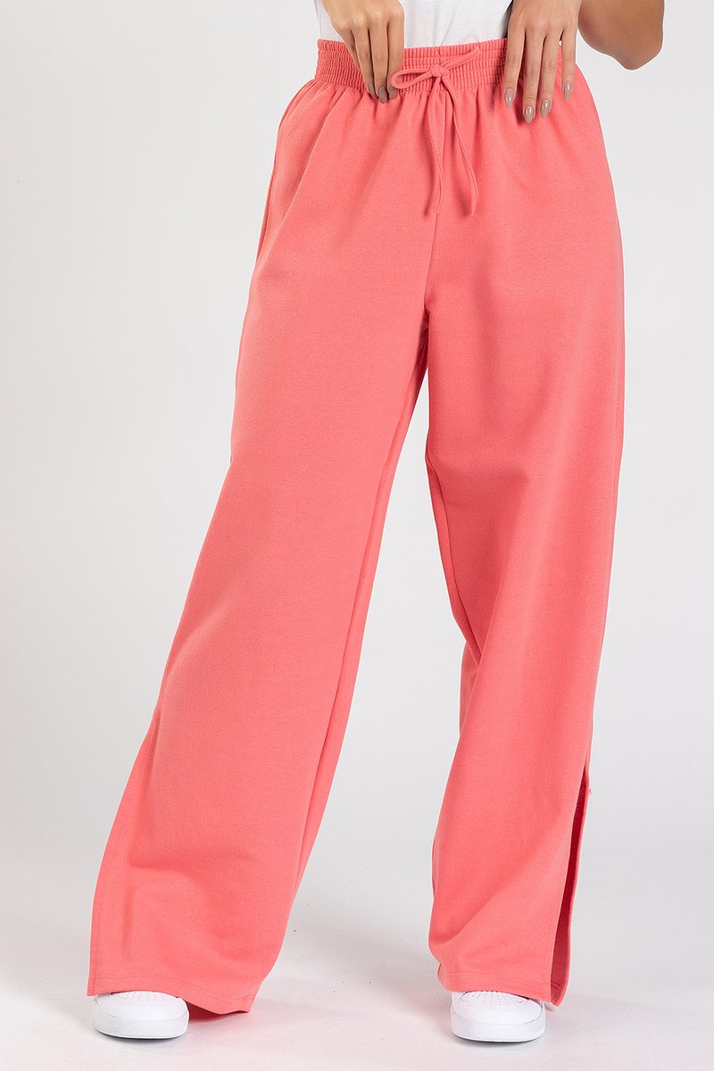 Calça Wide Leg lua com fenda na barra, confeccionada em moletinho comfy, leve e confortável. Possui cós com elástico e cordão ilustrativo. Modelagem soltinha. A malha é resistente.