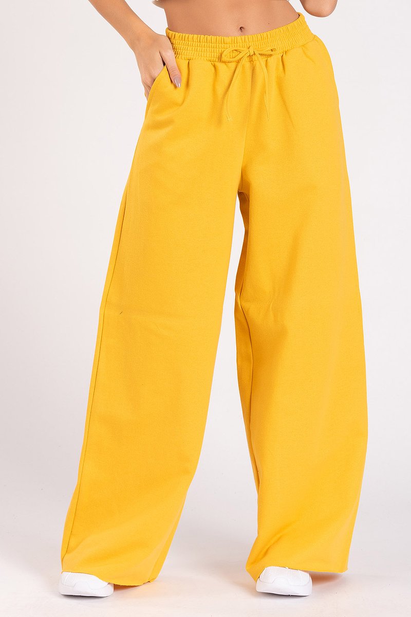 Calça Wide Leg com bolsos sobrepostos atrás e bolsos facas funcionais na frente, confeccionada em moletinho comfy, leve e confortável. Possui cós com elástico e cordão ilustrativo. Modelagem soltinha. A malha é resistente.
