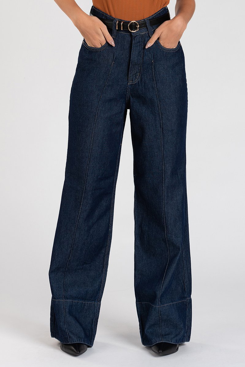 Confeccionada em jeans 100% algodão, a wide patty possui lavação escura com a trama do jeans marcada, além disso, possui barra com bainha alongada. Os bolsos frontais são funcionais, assim como os bolsos posteriores.