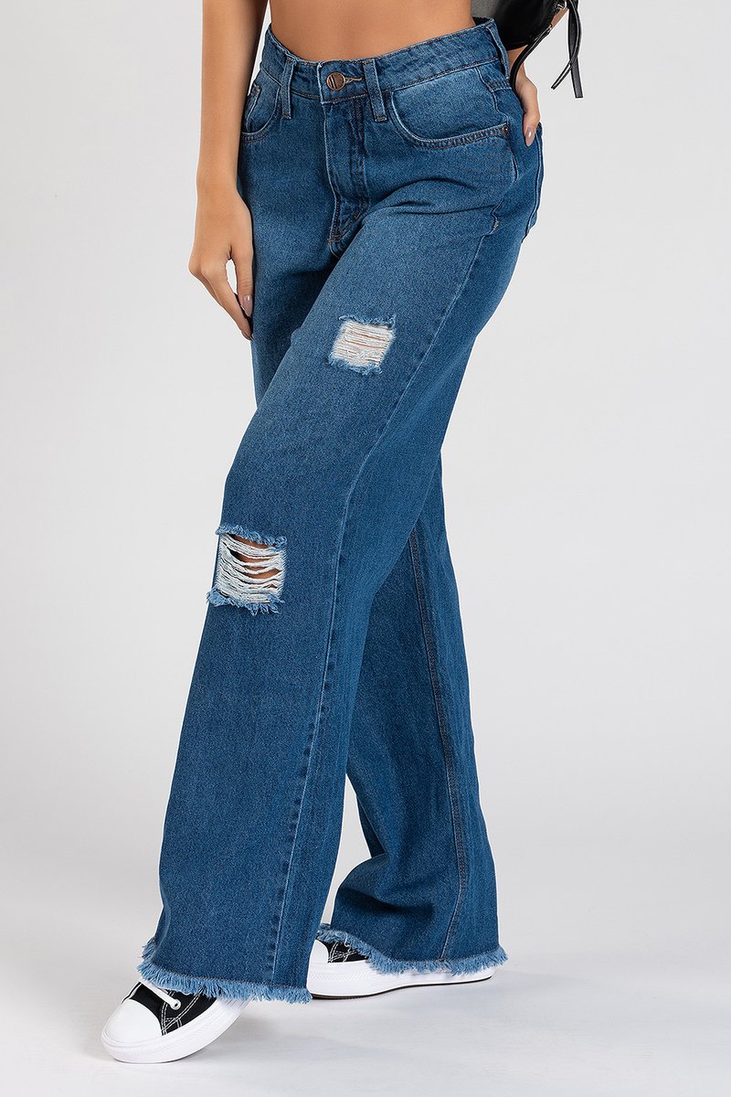 Wide Leg 100% algodão, sem elastano.