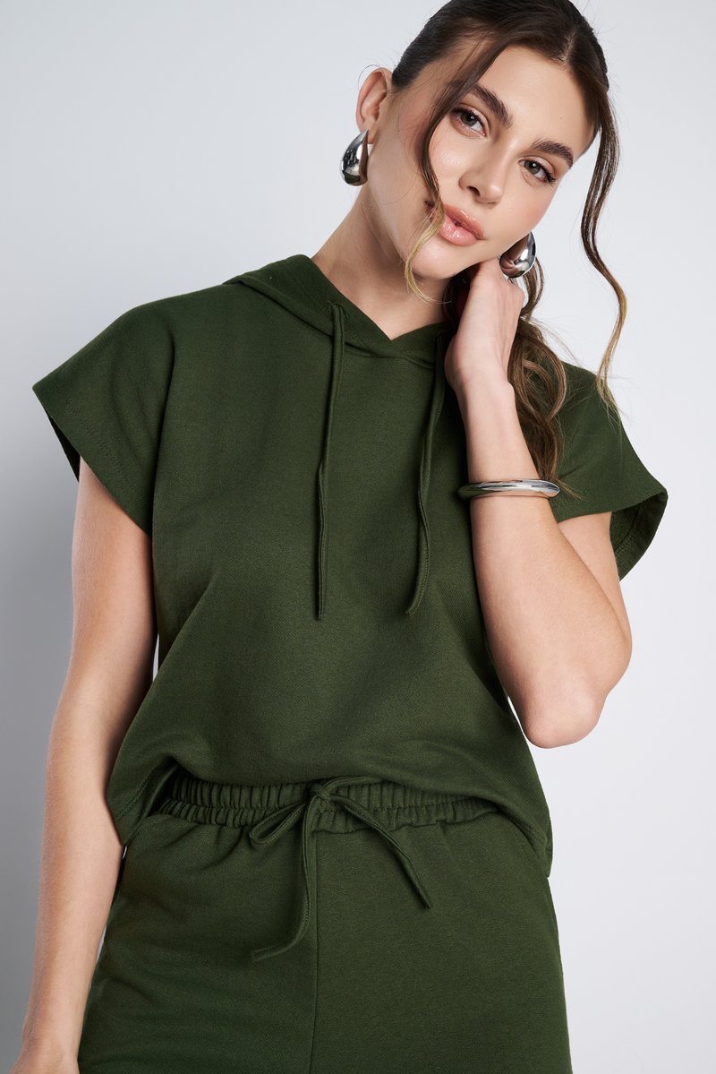 Com sua tonalidade marcante e elegante, o verde militar valoriza o caimento do conjunto e transmite confiança e estilo.