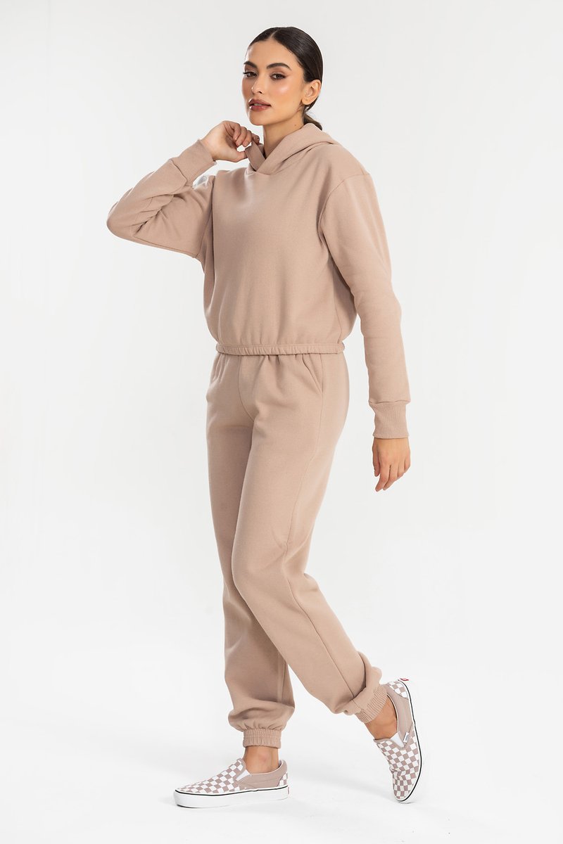 O cropped com capuz traz um visual despojado e contemporâneo, ideal para composições com peças de cintura alta, unindo charme e praticidade. A calça jogger complementa perfeitamente com seu caimento impecável, punhos ajustados que garantem um acabamento moderno e cós elástico com cordão, oferecendo ajuste confortável ao corpo. Juntos, formam um conjunto versátil e cheio de personalidade, perfeito para quem busca estilo sem abrir mão do conforto na rotina.