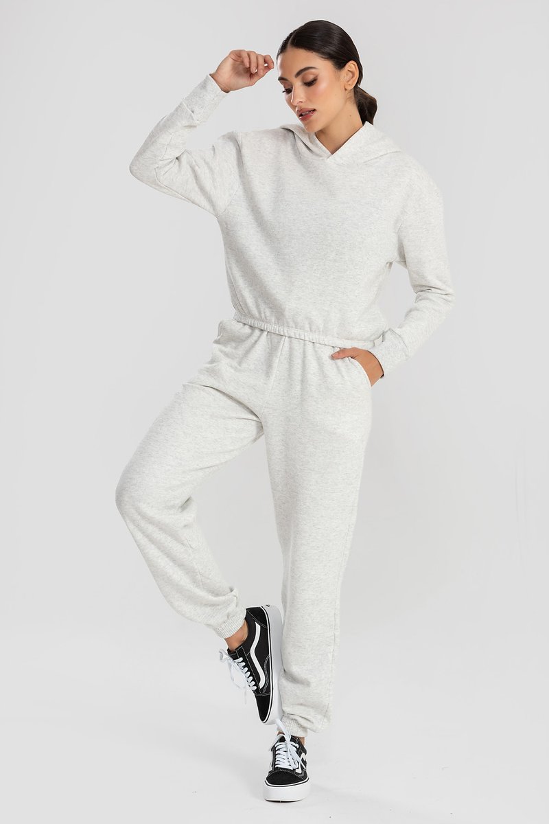 O cropped com capuz traz um visual despojado e contemporâneo, ideal para composições com peças de cintura alta, unindo charme e praticidade. A calça jogger complementa perfeitamente com seu caimento impecável, punhos ajustados que garantem um acabamento moderno e cós elástico com cordão, oferecendo ajuste confortável ao corpo. Juntos, formam um conjunto versátil e cheio de personalidade, perfeito para quem busca estilo sem abrir mão do conforto na rotina.