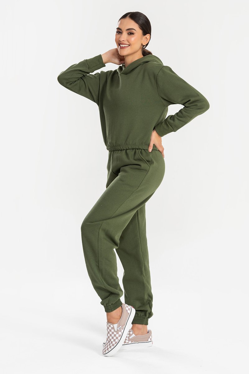 O cropped com capuz traz um visual despojado e contemporâneo, ideal para composições com peças de cintura alta, unindo charme e praticidade. A calça jogger complementa perfeitamente com seu caimento impecável, punhos ajustados que garantem um acabamento moderno e cós elástico com cordão, oferecendo ajuste confortável ao corpo. Juntos, formam um conjunto versátil e cheio de personalidade, perfeito para quem busca estilo sem abrir mão do conforto na rotina.