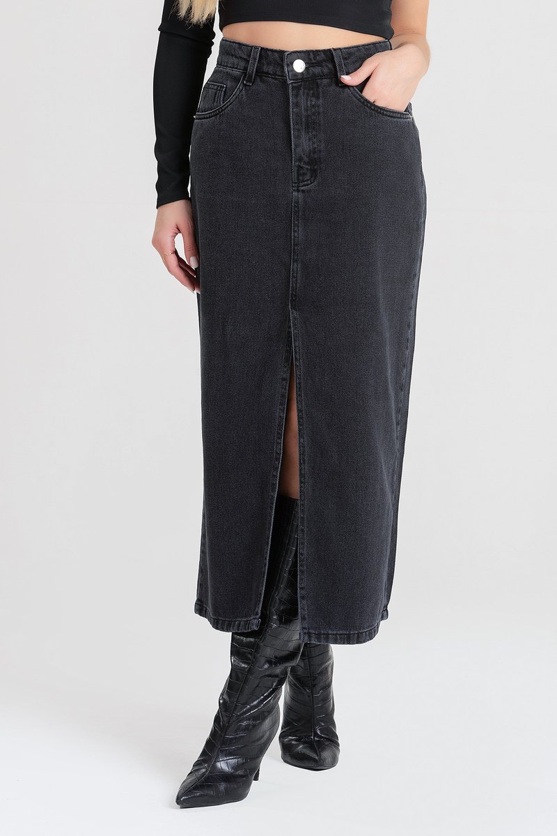 A Saia Midi Epona tem caimento reto e soltinho, resultando em muito conforto. A cor dessa modelagem é black com efeito levemente estonado que marca a trama do jeans, alta tendência que não pode ficar de fora do seu guarda roupas. A modelagem é cintura alta, podendo ser usada na proposta de cintura média ou até mesmo mais baixa resultando em um toque extra de estilo.